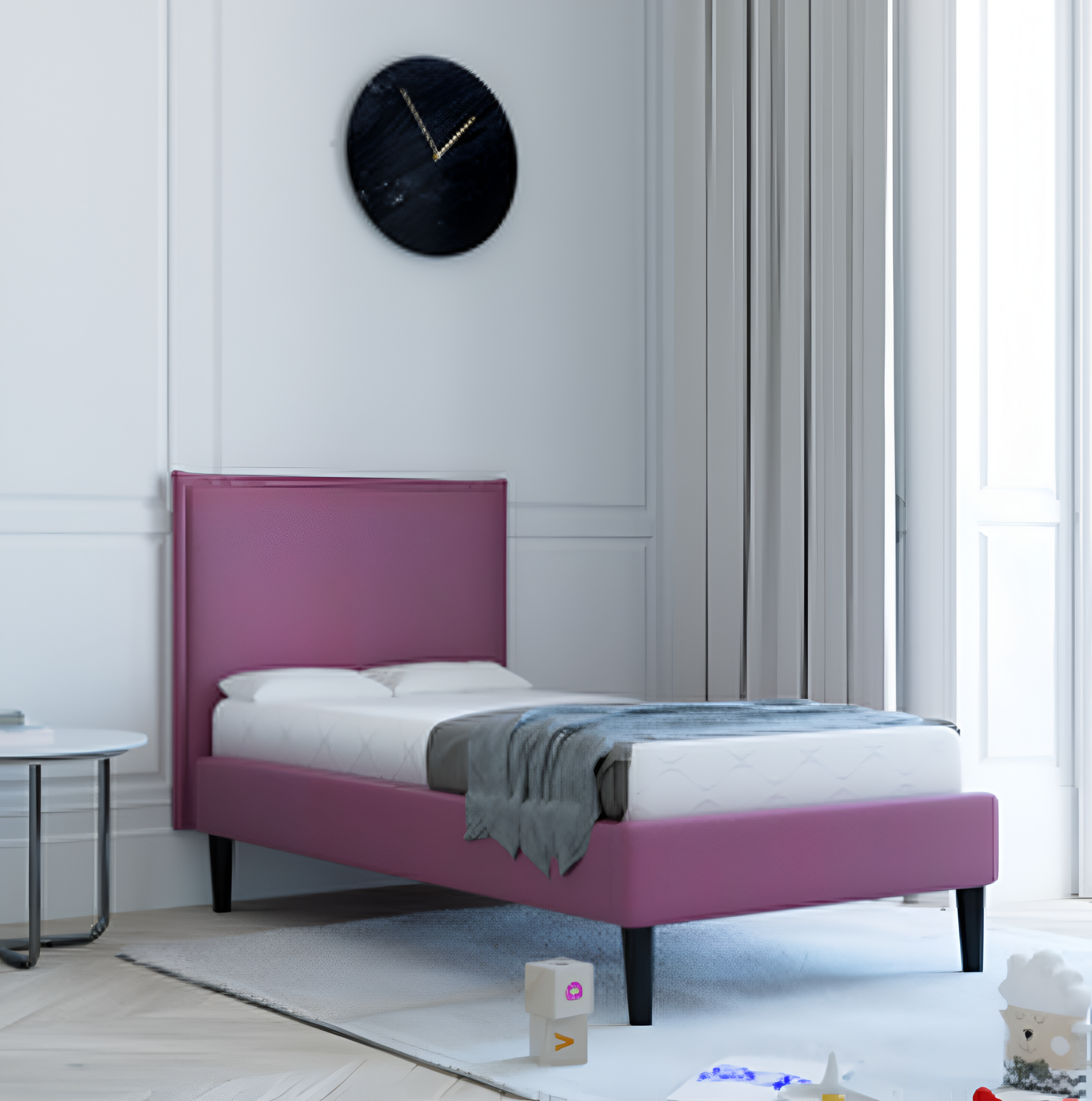 Łóżko FRILL to propozycja dla osób ceniących nowoczesny design i wygodę codziennego użytkowania. Jego konstrukcja oparta jest na solidnym stelażu listwowym, który zapewnia stabilne podparcie dla materaca oraz odpowiednią cyrkulację powietrza.