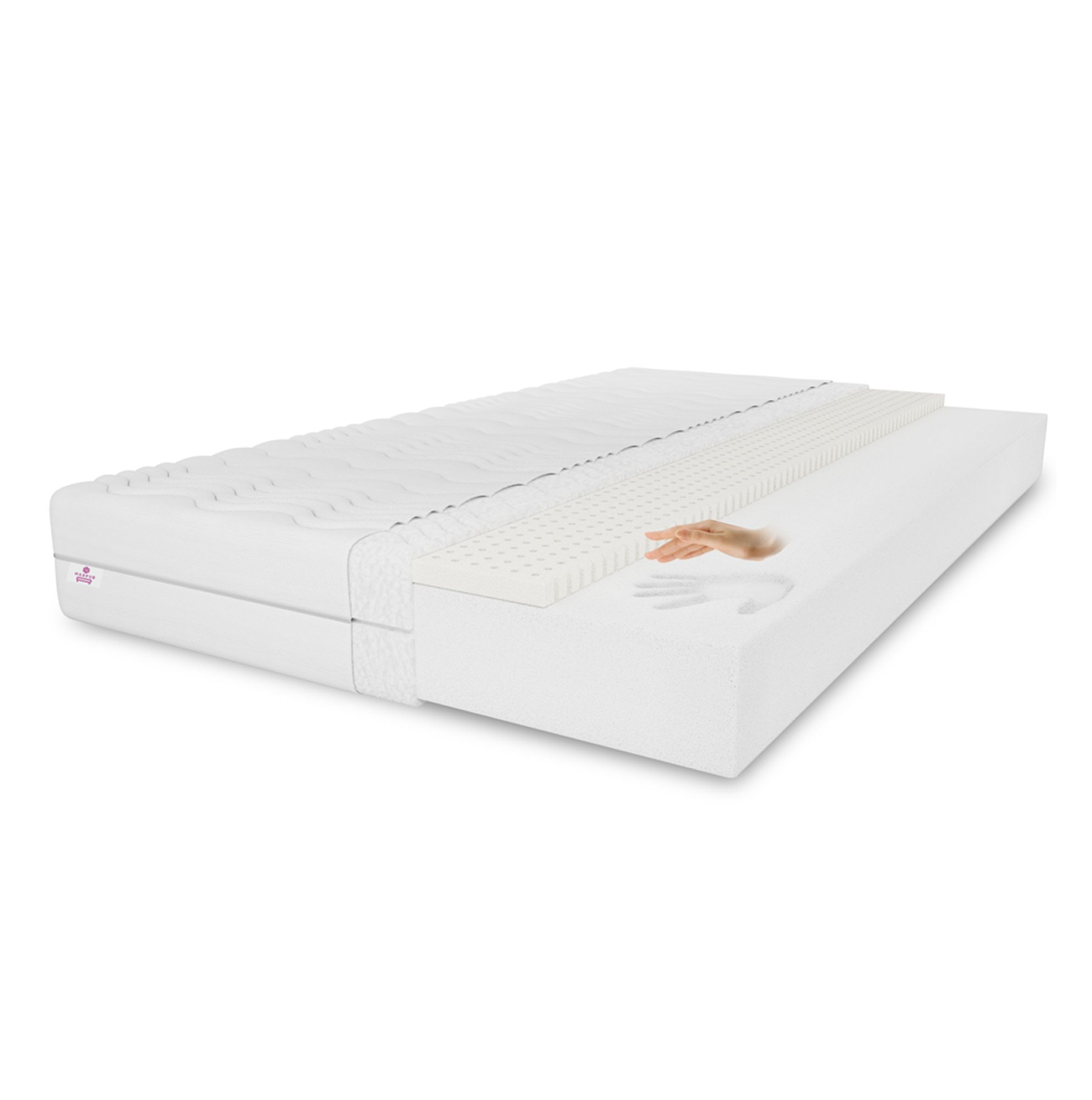 Jedna z warstw to lateks wentylowany o grubości 2 cm – materiał znany z wysokiej elastyczności punktowej, odporności na odkształcenia oraz właściwości antybakteryjnych. Dodatkowo perforacja lateksu sprzyja cyrkulacji powietrza, co znacząco poprawia higienę snu.